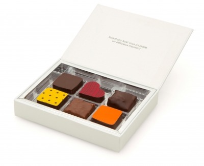 ナッツの香ばしさとサクサクした食感が楽しめる自家製プラリネで仕立てたプラリネノワール・プラリネオレ、世界一希少と言われるクリオロ種カカオを使用したガナッシュノワール、マイルドで口どけのよいガナッシュオレ、ゲランドの塩が味わいをひきたてたキャラメルサレの6種類からなるサダハル アオキの代表作。パリからの直輸入品です。