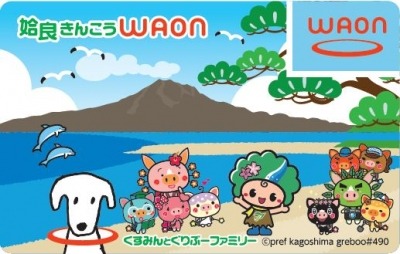本協定の取り組みの第一弾として、イオンは3月8日(火)より「姶良きんこうWAON」を発行します。鹿児島県の中央に位置する姶良市から臨む桜島と錦江湾の絶景に、姶良市のイメージキャラクター「くすみん」と、鹿児島県PRキャラクター「ぐりぶーファミリー」を仲良くデザインしました。