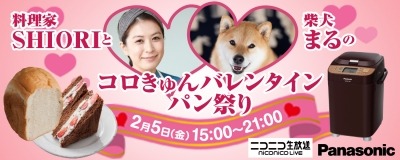 ▼ニコニコ生放送「料理家SHIORIと柴犬まるのコロきゅんバレンタインパン祭り」