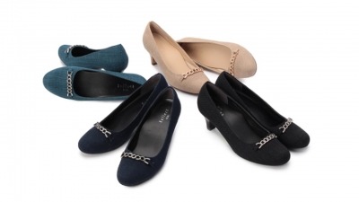 デザインは、ツイード調のボディに、華奢なチェーンをあしらった今年らしい印象で、きれい目からカジュアルまで活躍するオールマイティーな一足に仕上がっています。