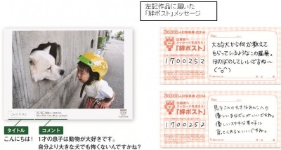 また、「想いをつなぐ」をテーマとする本写真展では、来場者から出展者への手書きのメッセージをお預かりする『絆ポスト』を各会場に設け、展示終了後に主催者より出展者にメッセージを郵送でお届けしています。昨年は全29会場で42,756通のメッセージをいただきました。出展者からは、「絆ポストのメッセージが届くのが楽しみなので来年も出展したい」等、好意的なご意見を数多くいただいており、写真が持つ、人と人をつなぐ力を多くの方にご実感いただいています。