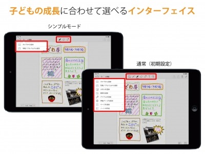 ・子どもの成長に応じて選べる「シンプルモード」の編集画面を搭載