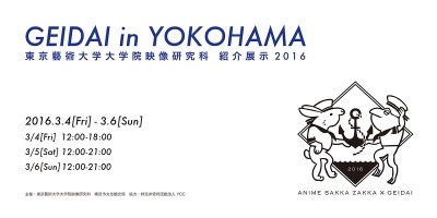 東京藝術大学大学院映像研究科は、2005年に学部を持たない独立研究科として横浜校地を開設し、映画専攻を設置。2006年メディア映像専攻設置。そして2008年にアニメーション専攻を設置しました。今年度で10周年を迎えた映像研究科の活動を紹介する上映やトークイベントをYCC [ヨコハマ創造都市センター] で開催いたします。みなさまのご来場おまちしています。