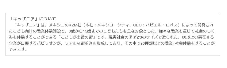 URL :「キッザニア東京」オフィシャルサイトwww.kidzania.jp/tokyo