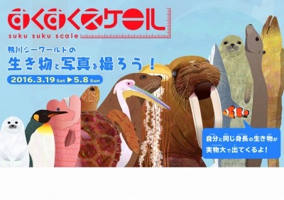 参加方法: 鴨川シーワールド内で「楽しい体験や感動シーン」を撮影し、ハッシュタグ「#鴨シー楽シー」を付ける、もしくは、「すくすくスケール(R)」に登場する海の動物と並んで撮影した写真にハッシュタグ「♯鴨すく2016」をつけてインスタグラムに投稿してください