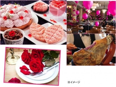 バラに囲まれた優美な空間で、バラのエキスを使用したりバラの花びらをあしらったりしたスイーツと九州の旬な素材を使った料理、両方を楽しめるブッフェを限定開催!