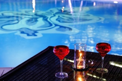 きらめくプールと、大阪城の夜景をバックにinstaしよう♪