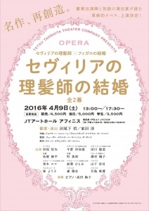 2016年4月9日(土) JTアートホール アフィニスで行われる オペラ「セヴィリアの理髪師の結婚」(主催:田尾下哲シアターカンパニー)同じ原作者が書き、同じキャラクターが活躍する2つの有名オペラ「セヴィリアの理髪師」「フィガロの結婚」を大胆に再構築したこの「セヴィリアの理髪師の結婚」公演で、こどもたちのためにリハーサルを無料公開いたします。オペラづくりの現場、オペラ歌手の迫真の歌・演技、本番直前の張りつめた空気を、ぜひ間近に見て、聴いて、感じてください。