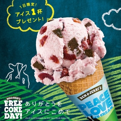 アメリカ生まれのプレミアムアイスクリーム「BEN&JERRY’S (ベン&ジェリーズ)」が、お客様へのありがとうの気持ちをアイスに込めて、世界中のスクープショップで無料でアイスクリームを配る「FREE CONE DAY (フリーコーンデー)」。今年もいよいよ4月12日(火)にやってきます!