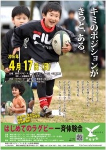 その1. 未来のヒーロー集まれ!!!「はじめてのラグビー一斉体験会」 4月17日(日)開催