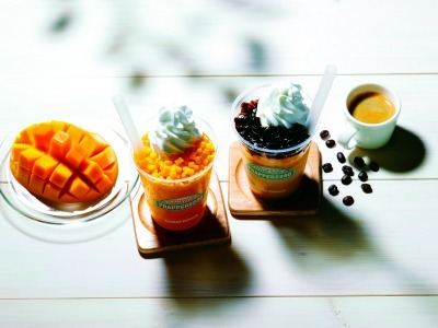 コーヒー風味のフローズンドリンクにプルプルとした食感のコーヒーゼリーをトッピングした「コーヒーゼリー フラペレッソ」と、マンゴー風味のフローズンドリンクに、シャリシャリとした冷凍マンゴーをトッピングした「ダブルマンゴー フラペレッソ」の2種をご用意しました。