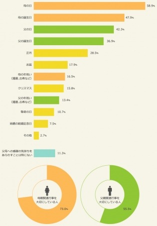 【1】 父よりも母が大事!? 感謝を伝える記念日、母関連行事が圧勝。中でも「母の日」がダントツ