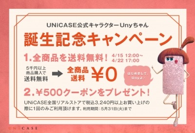 UNiCASEオンラインストアでご購入いただいた方全員に、全国のUNiCASEリアルストアで使える500円クーポンをプレゼント!