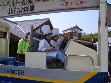 4人乗りのシートベルトコンビンサー車で時速約5kmでの衝突衝撃を体験しよう!