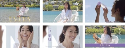 今井美樹さんがブランドキャラクターを務めるエビータの新CM「夏の高保潤*1ジェリー」が2016年4月27日(水)よりオンエア開始されます。暑さが気になるときもひんやり気持ちよい感触のジェリー化粧水を使って、50代になってもますます輝いてハッピーオーラ全開な今井さんのとびきりの笑顔が必見です。