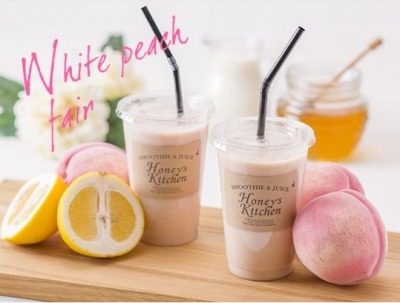 ハニーズキッチンでは、まろやかな甘さが魅力の「白桃」を使った初夏を楽しむ限定メニューを発売します。