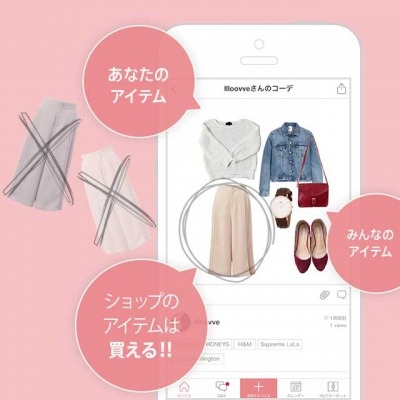 「欲しい」、「色違いで悩んでいる」新品アイテムなどを、自分の登録したアイテムや他ユーザーのアイテムと組み合わせ、コーディネートをシミュレーションして楽しむことができます。