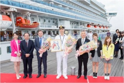プリンセス・クルーズでは、4年目の日本発着クルーズ・シーズン開始にあたり、4 月 25 日(月)に横浜港大さん橋 国際客船ターミナル、および停泊したダイヤモンド・プリンセスの船内において、同船の2016 年日 本発着クルーズ就航記念イベントを開催しました。当日は、2017年日本発着クルーズの商品発表のほか、今年より船内で上演を開始するエミー賞受賞スタッフによるミュージカル「Bravo」のオープニング・ナンバーのお披露目が行われました。