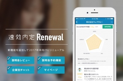 日本経団連のガイドライン(指針)の選考開始時期変更により、複雑化した就活スケジュールを辿ることとなった就活生が、不安感を払拭するため、大手ナビサイトだけに頼るのではなく、より多くの手段を活用し密度の濃い情報を集めに行っていることと、スマートフォンによる就活のスケジュール管理がメジャーになってきていることを鑑みて、就活開始から内定までを一貫してサポートできるアプリにリニューアルを行いました。