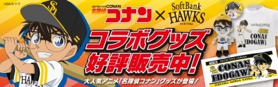 アニメ&映画20周年を迎える国民的人気キャラクター『名探偵コナン』こと江戸川コナンくんと福岡ソフトバンクホークスが初コラボ!ホークスのホームユニフォームを身に着けたコナンくんのグッズを販売中です。背番号は「4869」。シャーロックを暗号化した番号です。