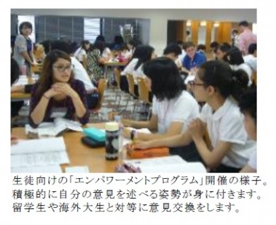 「Empowerment Program(R)(エンパワーメントプログラム)」は、海外の一流大学(院)で学ぶ学生と1対5~6人の少人数でのグループディスカッション(英語)を通して、自分の無限の可能性を信じ、大きな夢をもってグローバル社会で人生を切り開く力をつけるための、リベラルアーツ教育に範をとったプログラムです。