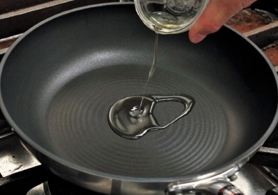 家庭で作る場合、油はフライパンを斜めにしたときに、