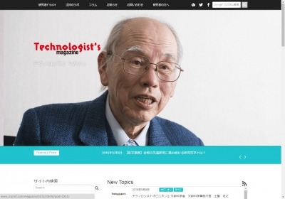 この度、オープンした研究者のためのWebメディア「テクノロジストマガジン」は、4月に創刊した研究・開発分野のヒューマンドキュメント誌 「Technologist’s magazine(テクノロジストマガジン)」に掲載された記事に加え、研究・開発分野の最新情報をお届けいたします。著名な研究者のインタビューのほか、注目の大学研究所や新規事業、さらには研究者を積極的に支援する企業などにスポットライトを当て、そこで働く人々の生き様や思いに迫った記事を掲載いたします。