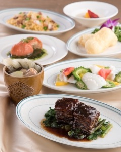 中国料理の王道メニューであるふかひれはもちろん、夏野菜や肉、鱧などを取り入れたランチとディナーをご用意します。ランチでは、さっぱりとした冬瓜とふかひれを壺で蒸したスープや夏野菜とイカの炒め物、黒酢で煮込んだ豚肉など食欲が減退しがちな夏にぴったりのメニューを揃えました。ディナーでは、スープの味をお選びいただけるふかひれの姿煮込みや鱧の天婦羅 梅塩炒めのほか、夏野菜と黒毛和牛を合わせた炒め物、ご飯には鰻入りの炒飯が登場し、美味食材と旬の味を存分にお楽しみいただけます。