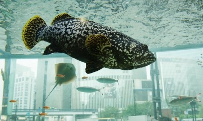 屋外イベントスペース「ソニースクエア」に設置した14トンの大水槽で、沖縄美ら海水族館からやってきた生き物たちが織りなす美ら海の生態系を再現いたします。