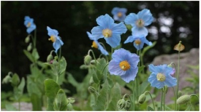 ヒマラヤの奥地に生育する高さ1.6mにもなる多年草です。澄み切った青空のような美しい花が咲きます。標高3,000mを超す高山にしか見られないうえ、容易に近づくことができないヒマラヤの奥地に咲くため、“幻の花”として知られています。1990年に大阪で開催された「国際花と緑の博覧会」において紹介され、一躍有名になりました。屋外(ロックガーデン)と屋内(ガラス室)2か所で植栽しており、屋外は6月上旬までお楽しみいただける見込みです。