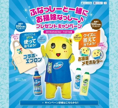 その一環として、ふなっしーのオリジナルグッズが当たるWEBキャンペーン「ふなっしーと一緒にお掃除なっしー♪プレゼントキャンペーン」を2016年5月23日(月)から実施いたします。