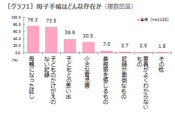 プレママ&ママにとって、母子手帳は「母親になった証し」(76.3%)となる記念的な存在だが、「必要最低限なこと以外あえて記録しない」(35.2%)という声もあり、母子手帳にはプライベートなことが書きにくいと感じている現状も・・・