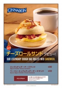 ふわっふわっもちもちのバンズと、とろっとした半熟卵とチーズの相性は抜群。シナボンでしか味わえない、できたてホカホカのユニ ークなサンドを、朝食や、ランチ、軽食にぜ ひご利用ください!