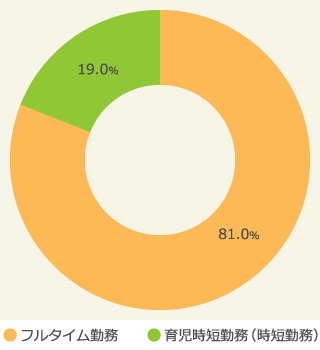 【1】産休・育休復帰後の働き方、育児短時間勤務(時短勤務)制度の利用者は19%で少数派。