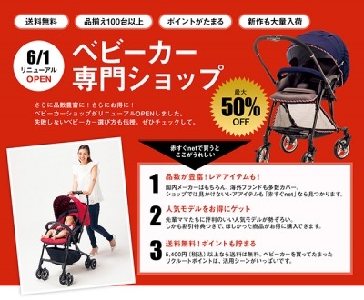 出産前後のママにとって、外出してベビー用品を購入するのはなかなか難しいもの。そんな中、ネット通販を利用する人が増えています。使う月齢やシーンに合う商品がすぐ見つかったり、先輩ママのクチコミを見ながら商品を比較できたりするところが便利との声が多くなっています。「NetBabyWorld(ネットベビー)」では、ベビーカー関連の売上が昨年対比139%、チャイルドシート・ジュニアシート関連で昨年対比125%と拡大しています。