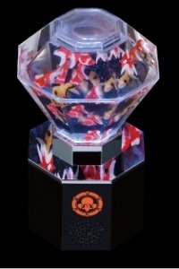 『アートアクアリウム』の代表作の一つ『Prisrium F18』を約12分の1スケールで再現。18面体の特殊水槽の中で、優雅に泳ぐ金魚のレプリカとLEDの光の変化が神秘的な空間を提供します。台座天面の鏡には泳ぐ金魚が映るほか、5段階変化する水流によって泳ぎ方の変化も楽しめます。そして赤や青、緑やピンクなど、徐々にさまざまな色に変化する水槽の幻想的な光に加え、『アートアクアリウム』でも実際に使用される専用楽曲「Prisrium」を内蔵し、癒しのひとときにぴったりなアイテムです。15分間のオートタイマー機能も付いており、就寝前にもご利用頂けます。