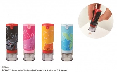 ディズニーキャラクター シリーズの「キャップレス9」は、なつ印時にキャップが自動で開くワンタッチ式のネーム印です。朱肉のいらないインキ内蔵のネーム印とウィングシャッター機構により、キャップを外す手間なく、片手でスマートになつ印ができます。また、シャッターの透明部分の端面にフラットな形状を設けることで、なつ印枠の下線と平行にすることができ、真っ直ぐきれいになつ印できます。