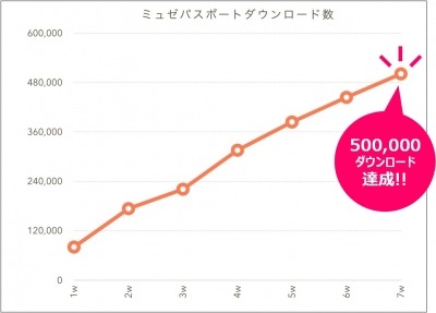 全国に186店舗(※1)のサロンを展開し、店舗数・売上No.1(※2)美容脱毛専門サロン『ミュゼプラチナム』を運営する株式会社ミュゼプラチナム(本社:東京都渋谷区、代表取締役社長:沼田 英也)は、2016年4月21日(木)にリリースしたミュゼプラチナム会員向けアプリ『ミュゼパスポート』が、リリースから7週間で50万ダウンロードを達成いたしましたのでお知らせします。