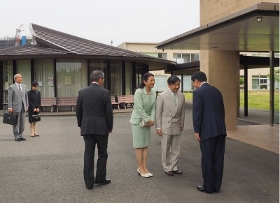 徳久剛史学長、木庭センター長がお迎えするなか、午後3時前にご到着。木庭センター長から施設概要のご説明を受けられた後、宮崎良文副センター長からのご説明で、「自然セラピー」の実験をご視察。皇太子殿下は、ヒノキ葉の香りをお確かめになりながら「良い香りですね。」とお話されていました。