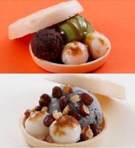 つぶあん、ビスケット、みたらし、メイプルシロップ、柿の種、甘納豆、黒糖、黒蜜、麦チョコ、麦ポン菓子の17種類が用意されておりますが初夏の涼し気な新味2種が加わり19種類となります。