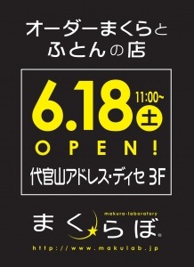 株式会社大和屋ふとん(本社:東京都町田市、代表:齊藤淨一)は、同社の11店舗目となる「オーダーまくらと寝具の専門店『まくらぼ』代官山アドレス店」を、6月18日(土)にオープンいたします。