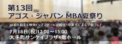 2016年7月18日(月・祝)に、ハーバード、スタンフォード、コロンビア、ケンブリッジ等、欧米MBAトップ校の日本人卒業生・在校生が集結する第13回「アゴス・ ジャパン MBA夏祭り」を開催いたします。
