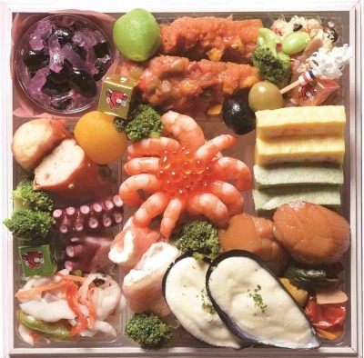 (内訳)おせち6品目、お肉盛り合わせ2品目、お刺身盛り合わせ3品目、お寿司1品目、デザート2品目
