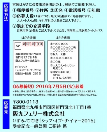 応募は官製ハガキに必要事項を明記の上、郵送でご応募下さい。