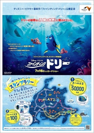 中日本高速道路株式会社のグループ会社 中日本エクシス株式会社は、運営する サービスエリア(SA)・パーキングエリア(PA)の154箇所で、ディズニー/ピクサー最新作「ファインディング・ドリー」の公開にあわせた、「サマー・クルージング スタンプ ラリー」を7月1日(金)から8月31日(水)まで開催します。
