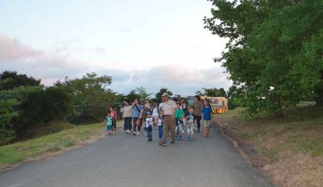 全行程は約5kmで、日没とともに暗闇になるナイトウォークエリアを同行スタッフ先導のもと、懐中電灯を手に進んで行きます。