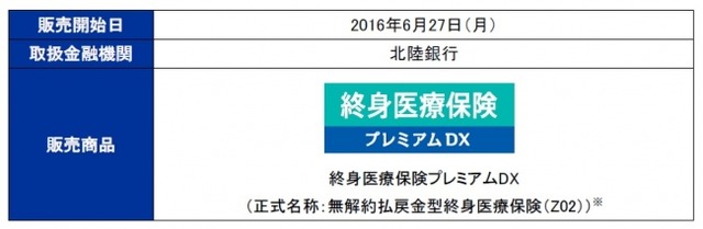 チューリッヒ生命(正式名称「チューリッヒ・ライフ・インシュアランス・カンパニー・リミテッド」、日本支店:東京都中野区、日本における代表者兼最高経営責任者:太田健自、URL:http://www.zurichlife.co.jp/)は、2016年6月27日(月)より、株式会社北陸銀行(富山県富山市、取締役頭取:庵栄伸、以下「北陸銀行」)と代理店業務委託契約を締結し、以下のとおり、当社保険商品の販売を開始することとなりましたので、お知らせいたします。