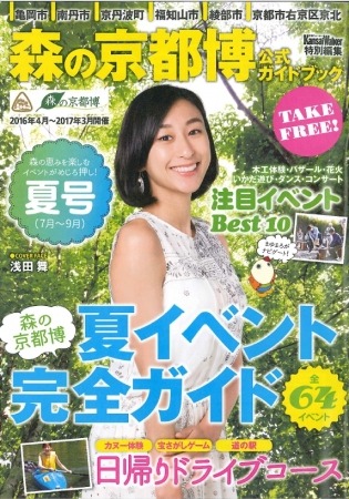 今回は、森の京都博の夏イベント完全ガイドとして全64イベントを紹介。木工体験や花火、いかだ遊び、木こり体験などなど盛りだくさん。また、京都府が進めるもうひとつの京都の番組にも登場いただいている浅田舞さんが表紙に登場。