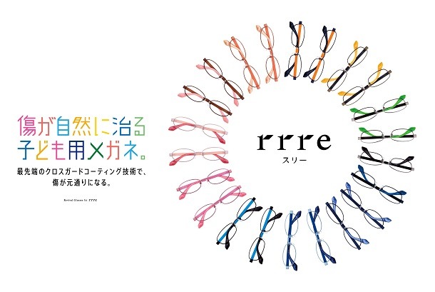 全国108店舗(2016年3月現在)を展開している株式会社ビジョンメガネ(本社:大阪府守口市、代表者:安東晃一)は、メガネのテンプル(つる)に宇宙船の部品等に使われる柔軟性、強度に優れた特殊素材「ウルテム」と、キズを自然に修復する特性を持つ「クロスガードコーティング」を施した、子供用メガネ「rrre(スリー)」を6月24日(金)より販売いたします。