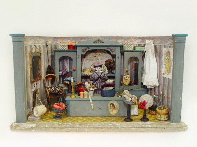また、人形がセットになったドイツの「帽子屋」や「ケーキ屋」などの、実際に遊んでいた様子が伝わる貴重なドールハウスなど、建物全体の大型のドールハウスから、ひと部屋をミニチュアにしたものまで、アンティークから現代にわたる様々なドールハウスを展示します。